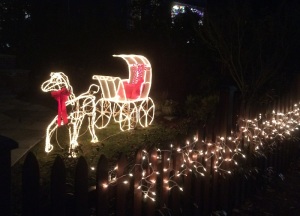 My neighborhood of Capitol Hill does not go overboard with Christmas decorations, but I would say one in three or one in four houses has some lights up on the house, or on the fence, or in the garden. Does my porch light count? (No, I would say not!). That’s all I have. I put ‘icicles’ on my front gutter one year, but that was several years ago.