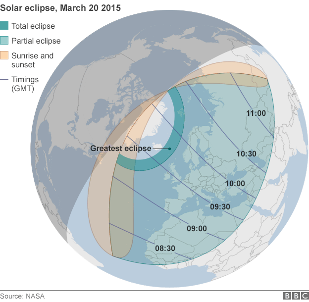 It’s officially spring here _81764897_eclipse_globe_624mapin the Northern Hemisphere.  Earthlings in the UK and Scotland were treated with the sight of a solar eclipse on Friday.  No such luck anywhere in North America.  The Faroe Islands were actually the best place to be.  The islands are north of the Shetland Islands, a ‘self-governing country in the Danish realm’, says WIkipedia.