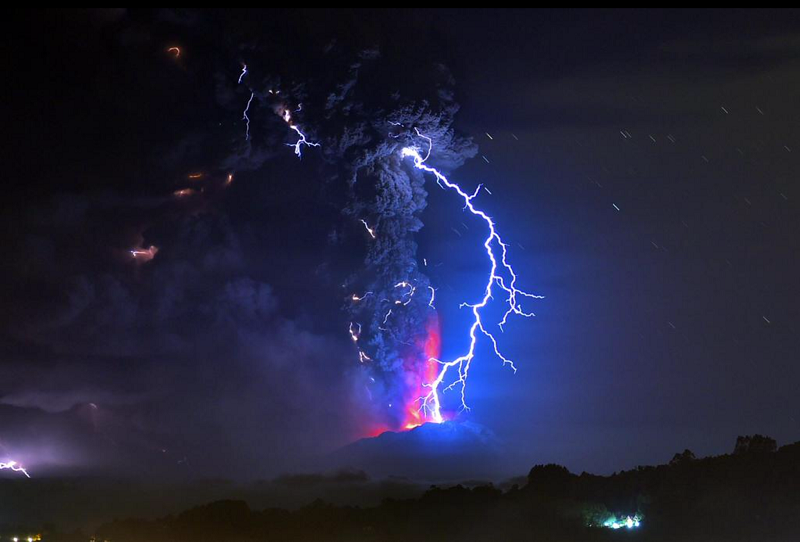 eruption on TV, as I got home tonight .. so I had to check it out and see what other spectacular pictures I could find on line. The volcano is more or less in the middle of Chile at an altitude of 6,000 ft (2,000 m) with a crater at the top that is some 1,500 ft (300 m) wide.