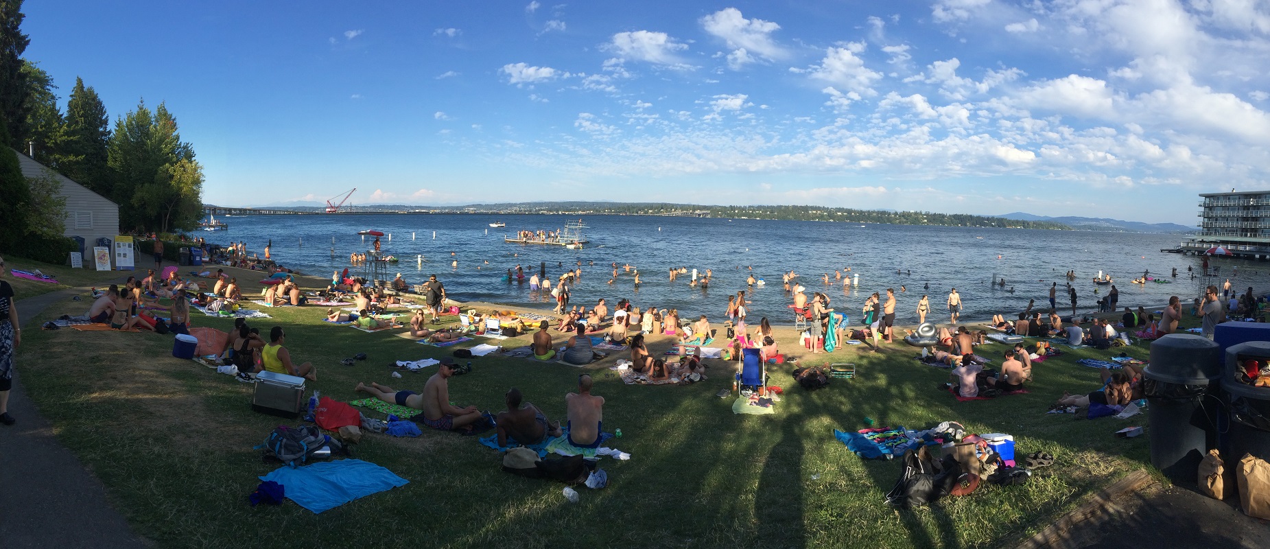It’s not a real beach, but we call it one anyway : Madison Park Beach at the spot where Madison Avenue runs into Lake Washington. Lake Washington separates Seattle proper from the ‘East Side’ where the city of Bellevue, and Redmond, the home of the Microsoft campus, are.