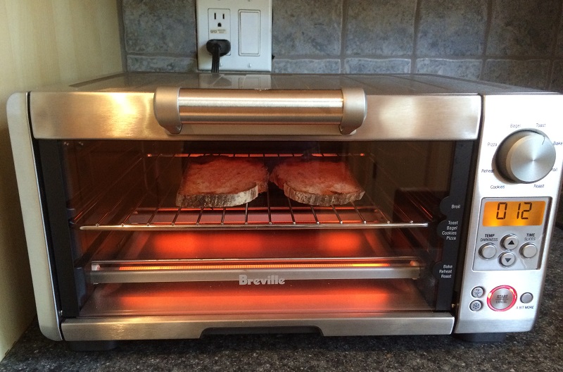 My ‘little toaster oven that could’, a cheap Black & Decker model, finally gave out after 12 years of service, so it was time for a new one. The new Black & Decker went for $60, but there was also a stainless-steel clad ‘Breville’ brand toaster oven (no, it’s not French or German, it’s made in China all the same). So I uhm-ed and ah-ed the way I sometime do in the store : do you really need a $150 model? Well, the more expensive oven won out. It had more heating elements for a perfect toasted cheese, and the crumb tray at the bottom is super easy to draw out and clean (not the case with the Black & Decker).