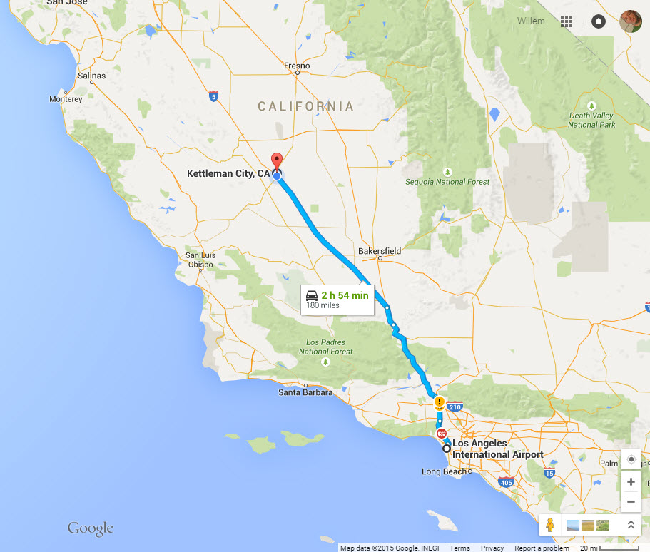 Monday morning to go out and help with the training of our system’s new users, located in Kettleman City in the Central Valley in California. (There is a big gas pipeline compressor station there). Kettleman City is a small town just off of I-5. I took a flight out to Los Angeles airport and did the three-hour drive up north from there. It is hot out here – of course. At 7 o’clock this evening, it was still 96°F/ 36°C.