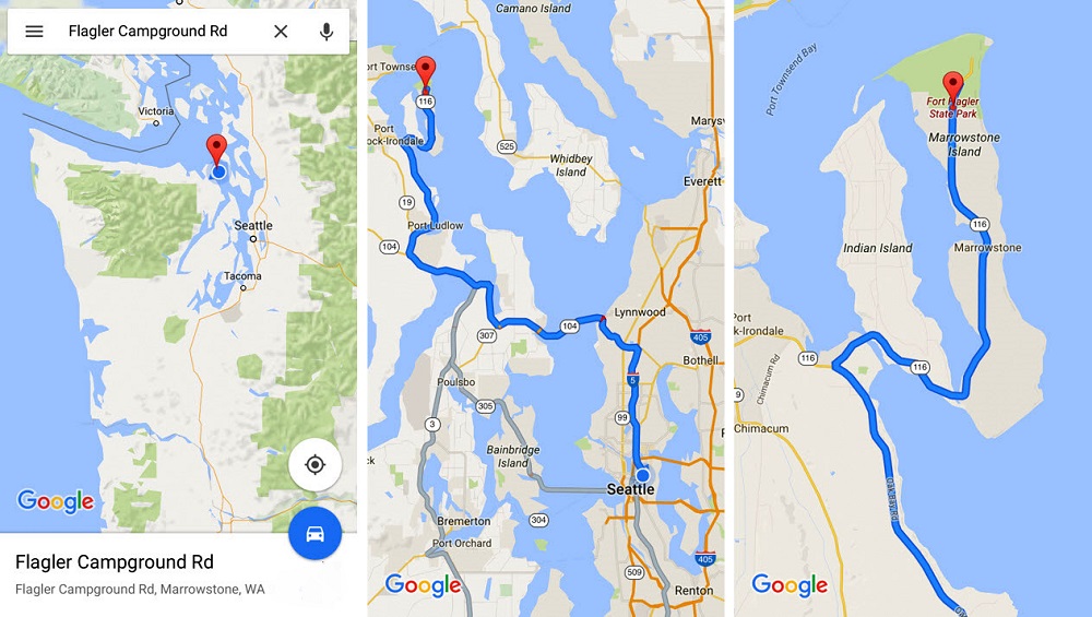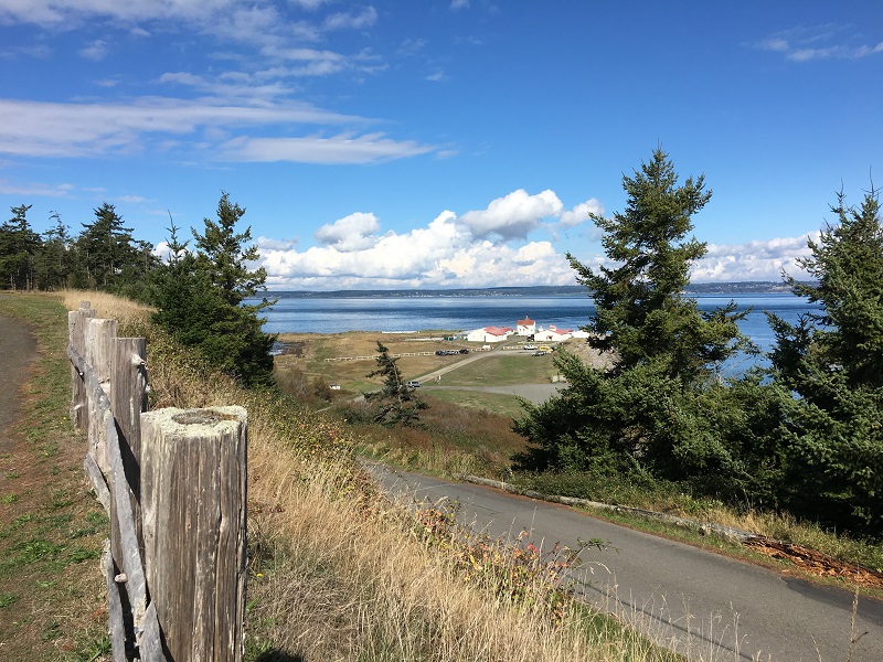 From Fort Flagler State Park, visitors can see Port Townsend to the northwest, the cranes at the Navy base on Indian Island to the west, and Whidbey Island eastward across Admiralty Inlet. Flagler Road (SR 116) terminates inside the park.