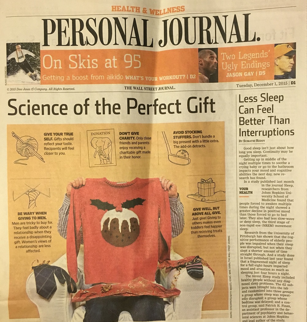 Posted on December 2, 2015 by WillemTuesday/ giving the perfect gift Check out the tips for gift giving from my hotel newspaper (the Wall Street Journal). It says men are tougher to buy gifts for than women are !
