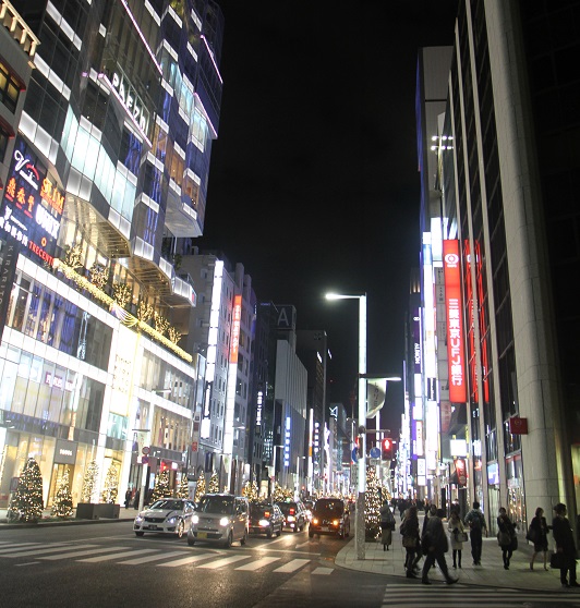 My Marriott Courtyard hotel is tucked into the 4th floor of a building just outside the upscale shopping area of Tokyo, the Ginza district. Here are some pictures of my walkabout there last night.
