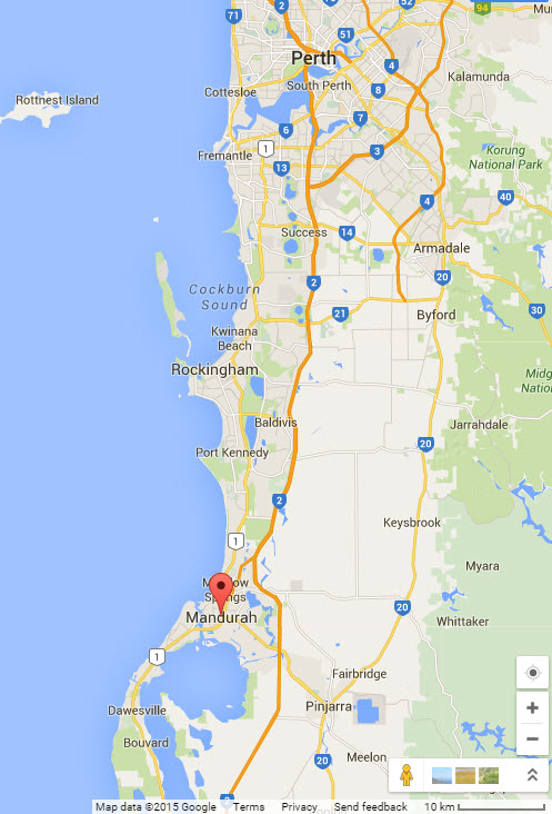 We drove down to the seaside city of Mandurah (say ‘MAN-duh-rah’) on Saturday (the day after Christmas, called ‘Boxing Day’ here), about an hour’s drive south of Perth. The Peel-Harvey estuary is heavily used for recreational boating and fishing. It is now mostly salt-water, after the construction in 1994 of a channel that let seawater push in with the tides. Still, the estuary is home to the blue swimmer crab, the western king prawn and fish such as black bream and cobbler, and is even visited occasionally by dolphins.