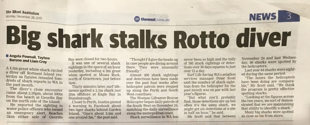 Hmm. A good thing I read this on Monday night we had returned from our little swim at Rottnest Island. (Rotto is shorthand for Rottnest Island). There are about 12 shark attacks recorded on average per year on Australian beaches. This year has seen 33 attacks with 2 fatalities.