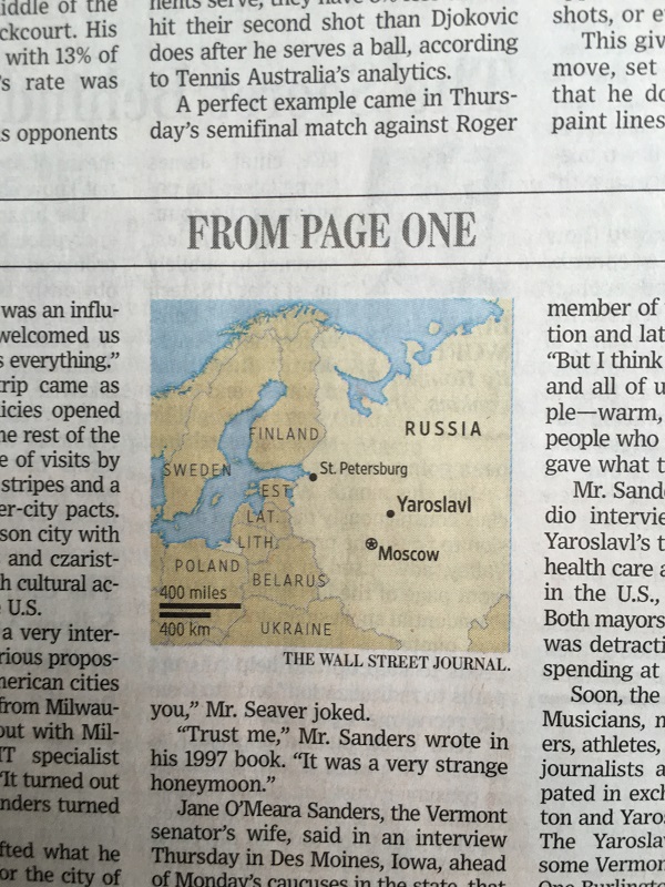 Yes, the Republicans are ‘upside down’ with Donald Trump being the leading candidate for the Republican nomination for President. (The elephant is the mascot of the Republican Party. A donkey is the mascot of the Democratic Party).Earpieces that will offer real-time translation are near, says this article. I suspect Afrikaans will not be one of the first languages available for translation. Probably : English-Mandarin-Spanish-Japanese-French-German?Maybe we can all open our eyes and look at our retirement accounts and 401(k) accounts now, here in the USA, now that January is over? Friday was a good day for the stock market.Check out these cool pods on the ice in the Antarctic. Maybe our little houses on Mars will look like this as well, some day?Djokovic won the Australian Open 2016, beating Roger Federer in the semis and Andy Murray in the finals. This article explains why he is such a formidable opponent.Yaroslavl is a Russian city, the one which Bernie Sanders and his wife went to for their honeymoon. (It is a city with which Bernie as mayor of Burlington, Vermont, established a sister-city relationship with).