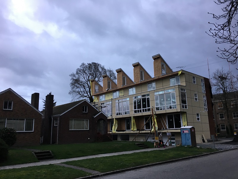 Then for ‘Exhibit B’ there is the old dilapidated house on a street corner nearby that was torn down, that I wrote about in July 2015. Construction of a 5 unit townhouse set is progressing rapidly (picture below).