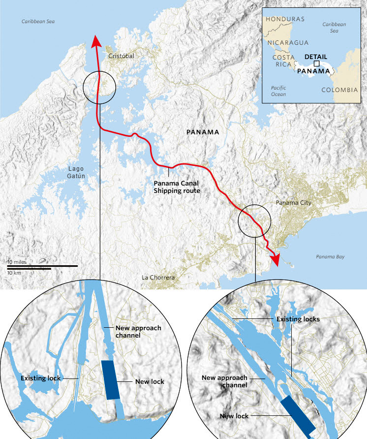 The Panama Canal expansion opens on Sunday June 26 amid much fanfare and one of the worst shipping industry slumps ever. Check out these two articles. This map is from an article in the Wall Street Journal.