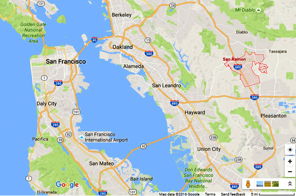 The project office is in San Ramon, over on the east side of the Bay. It is a little shorter to drive across the dreary Hayward-San Mateo Bridge instead of the Bay Bridge to the north, to get to San Francisco airport.