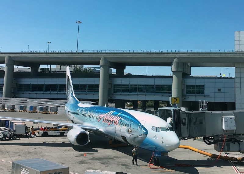 Is it a fish? Is it a plane? Our Alaska Airlines 737 at the gate at San Francisco airport’s International Terminal, shortly before we boarded.