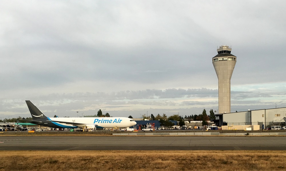 Check out the Amazon Prime Air cargo plane that I spotted at out arrival at Seattle airport.