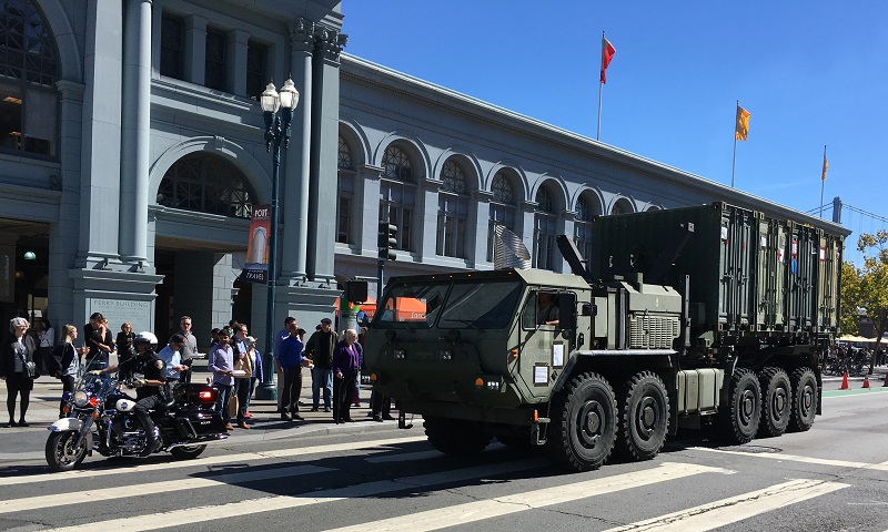 I was a little shocked to see a convoy of military vehicles make their way along the Embarcadero in San Francisco during lunch time today, but then learned that it’s Fleet Week in San Francisco, and there will be fighter jets flying over the Bay and all that (the same Blue Angels that come to Seattle for Seafair in August every year). The fighter jets have been a sore subject with peace protesters in San Francisco since the mid-80s.