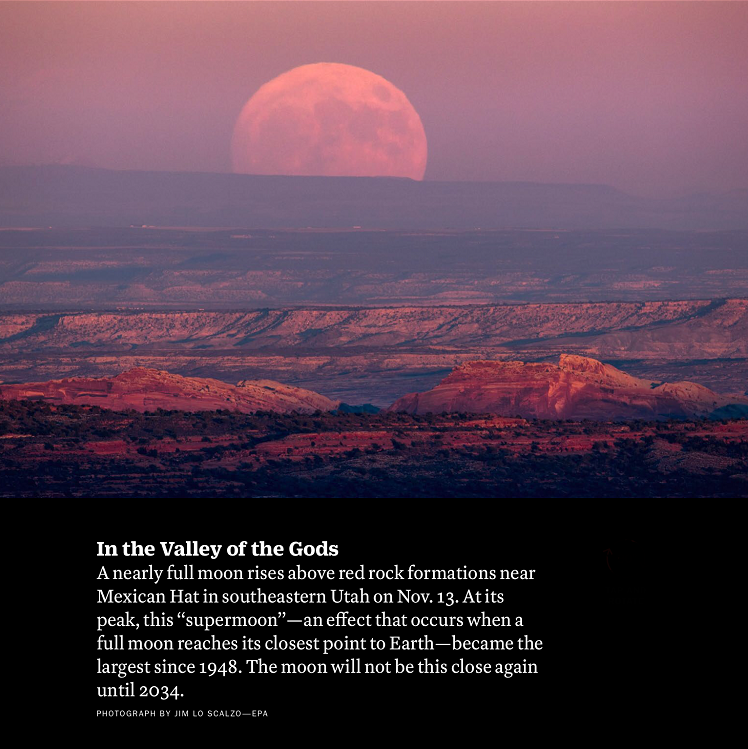 The moon loomed over Earth larger than it had in a long time this week. I saw it from the airplane on Sunday evening. TIME magazine published this beautiful picture on Friday, from a tiny town called Mexican Hat in Utah. I have fond memories of Mexican Hat. A friend and I stayed there overnight in a motel during a road trip in 1999.