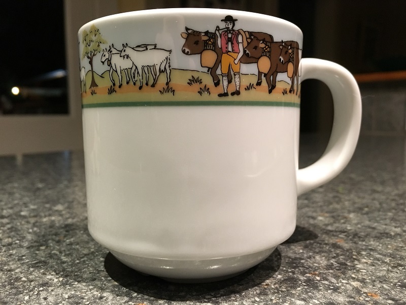 The coffee mug is from Swiss porcelain manufacturer Langenthal, named after the town of Langenthal where its factory was established in 1906.