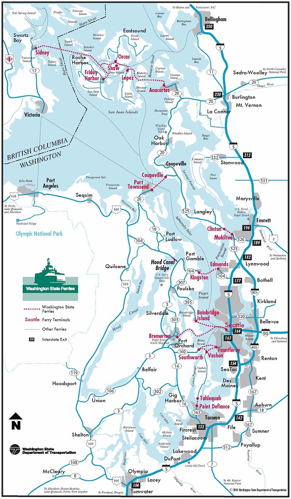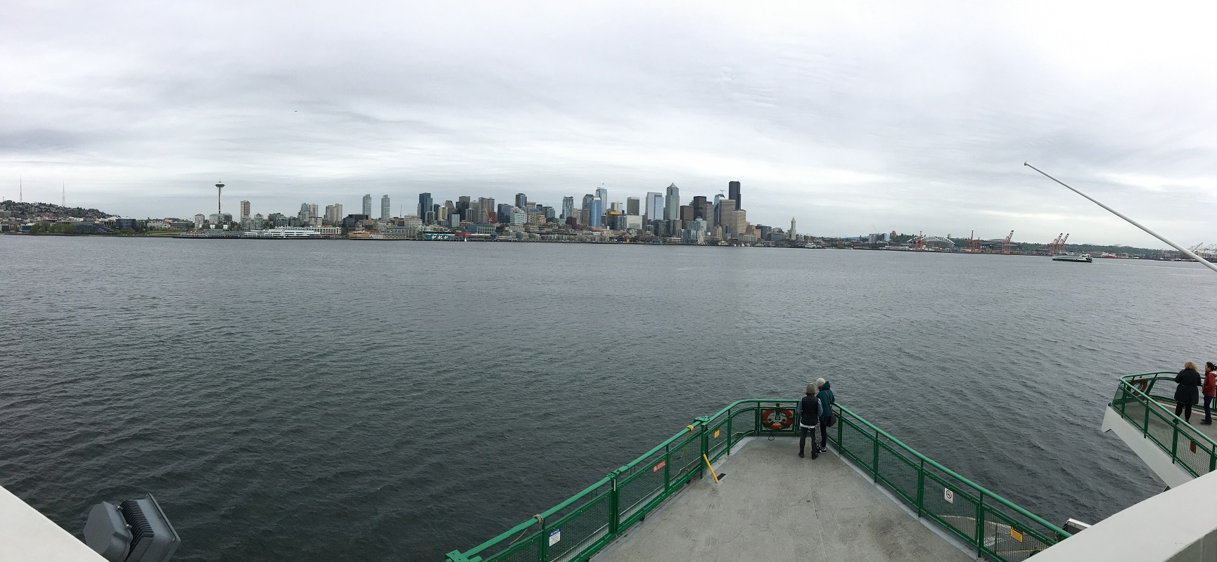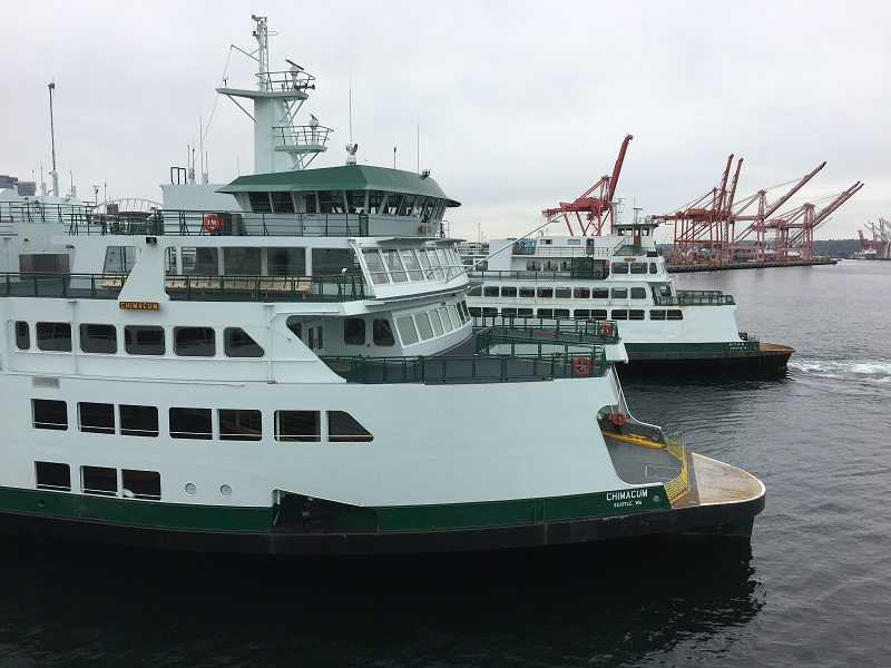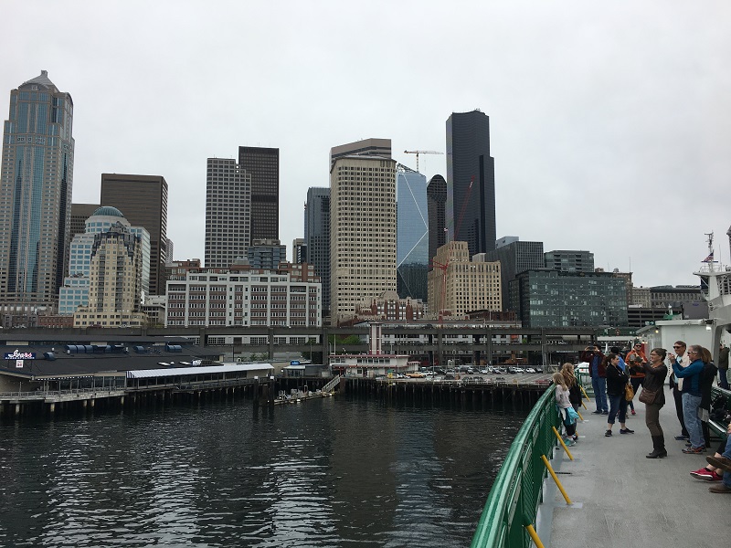Washington State Ferries operates the largest ferry system in the United States. It runs ten routes serving 20 terminals located around Puget Sound and in the San Juan Islands. The agency maintains 22 vessels, carrying 24.2 million passengers in 2016.The newest Washington state ferry, Chimacum, joined the fleet on Friday, April 7. It is the third Olympic Class ferry and can carry 144 cars and 1,500 passengers. The name Chimacum (CHIM-a-cum), honors the Chemakum tribe’s gathering place, which is now the present day town of Chimacum near Port Townsend.This is a departure picture from the ferry Tacoma, on our way to Bainbridge Island. Look for a new building called The Mark in the background, just left of the tall black Columbia Tower, now nearing completion.The view of the Seattle downtown skyline from way back. The cruise season is just getting started. There is a Holland America cruise ship just to the right of the Space Needle getting ready to set sail for Alaska.