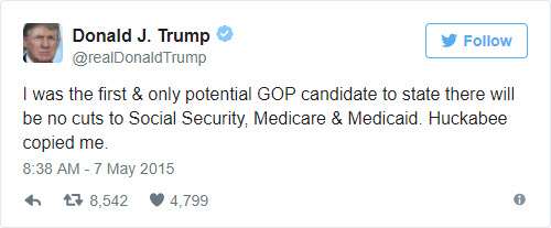 So much for President Trump’s campaign promises to ‘take care of people’ and provide them with ‘terrific healthcare’, and that there will be no cuts to Medicare and Medicaid.