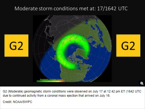 *The Northern Lights (‘aurora borealis’) are generated during geomagnetic storms in Earth’s atmosphere. During solar flares, clouds of electrons, ions, and atoms are expelled through the corona of the sun into space. When these clouds of particles reach Earth a day or two later, they interact with gas molecules in the atmosphere, resulting in the greenish color displays.