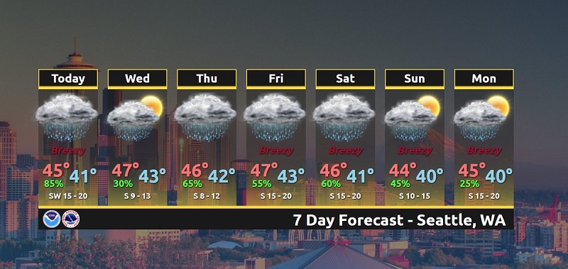 Here is the Seattle area forecast for the next seven days.