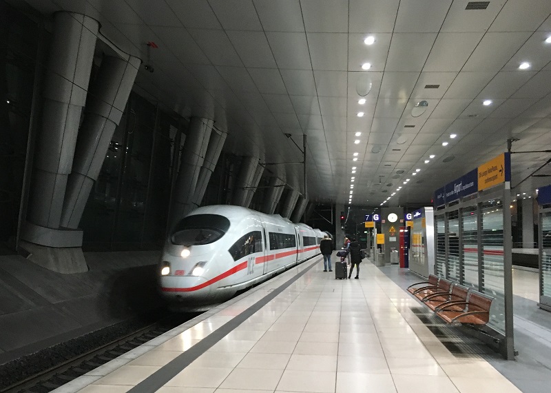 The intercity express train from Frankfurt to Cologne made short work of the 118 miles (190 km) from Frankfurt. The trip took only 50 minutes. These trains travel at speeds up to 186 mph (300 km/h)!