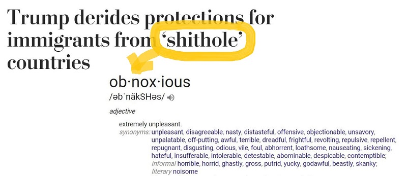 Early Friday morning, Trump denied in tweets that he used derogatory language, as the fall-out continued. The government of Botswana sent a letter inquiring if they are a sh** hole country as well. (And how about South Africa, President Trump?). The US ambassador to Panama announced his resignation.