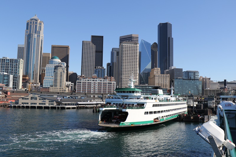 The Seattle-Bremerton ferry is about 60 minutes one way.
