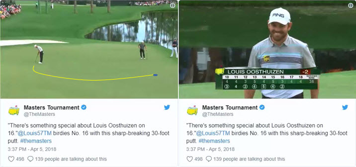 Check out South African Louis Oosthuizen’s putt on the 16th. He sank a 30-footer by standing with his back to the hole, and judging the sharp break on the putting green perfectly. Big smile and a little shrug of the shoulders afterwards.