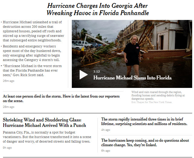 Hurricane Michael will make landfall in the Florida panhandle tomorrow. It’s going to pack a powerful punch, with winds that could exceed 100 mph. At least it is projected keep moving at a steady pace, and not sit in one place like Florence did.