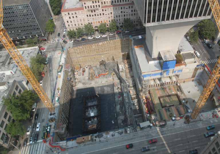 The Rainier Square Tower (59-story, 850 ft/ 259 m tall) in downtown Seattle, is getting off the ground, with its completion scheduled for early 2020.