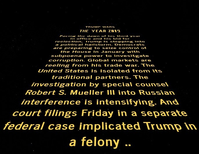 A someone on Twitter says, this summary of Trump & his presidency heading into 2019, from the Washington Post (by Robert Costa and Philip Rucker), reads like a Star Wars opening crawl: