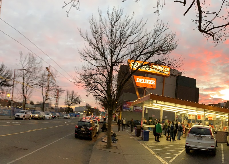 I walked by Dick’s Drive-in on Broadway at about 5.20 pm tonight. (Temp. 49°F/ 9°C, so not bad, at all). Across the street on the left, is the Capitol Hill train station. Three new apartment buildings are under construction right next to the train station.Billionaire Bill Gates (63) spotted at the Northeast 45th Street Dick’s in Seattle’s Wallingford neighborhood, around 7 p.m. on a recent Sunday. “He ordered a cheeseburger, fries and Coke,” said Paul Rich that took the photo. Rich has been going to the beloved fast-food franchise every week or so for about five years. [Photo: Paul Rich]