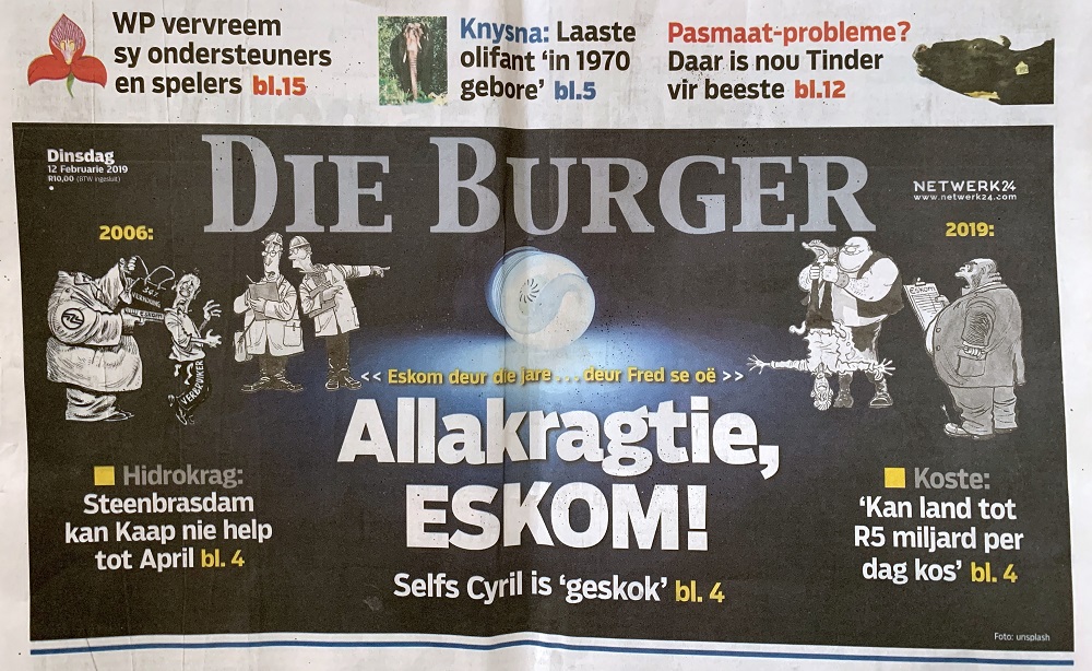 It used to be, many years ago, that we would call South Africa’s national telephone company, Telkom, ‘Public Enemy No 1’. (They were a monopoly, and their services were mediocre at best). Well, these days that title belongs to South Africa’s electrical utility company, Eskom.