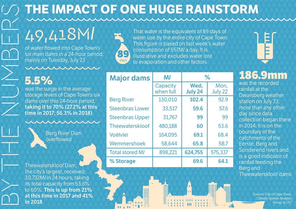 As the rainy season draws to a close in Cape Town, South Africa, the six dams in the greater area around it are doing much, much better than they did in 2017 and 2018.