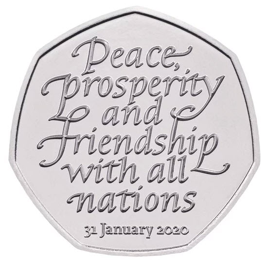 From the Royal Mint website: ‘Commonly known as ‘Brexit,’ the United Kingdom’s withdrawal from the European Union officially took place on 31 January 2020.