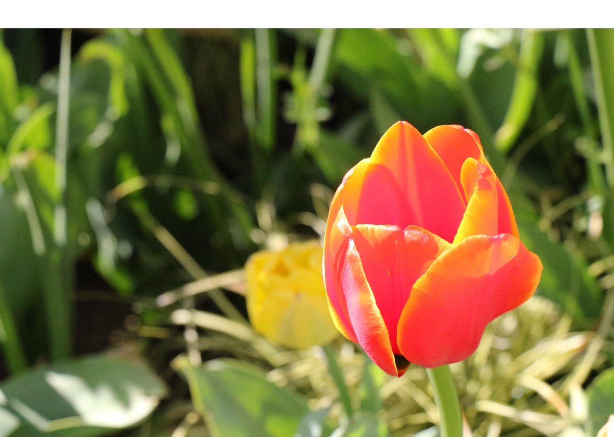 It would be impossible for bugs and butterflies to miss the flaming orange tulips, by the Asian Art Museum.