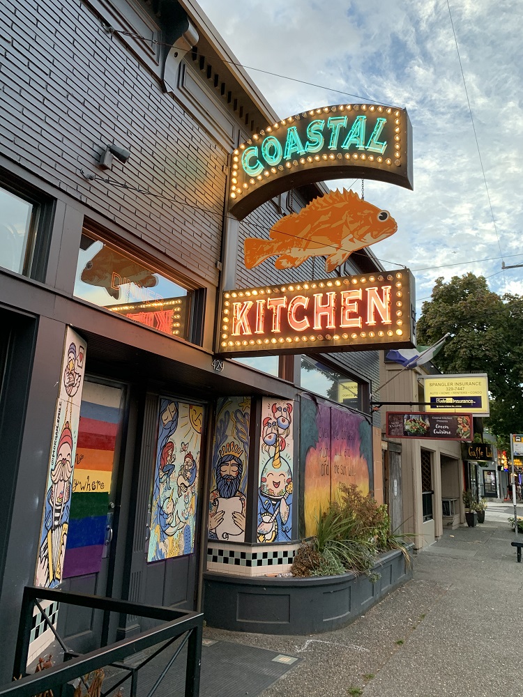 Coastal Kitchen’s sign was lit up on Friday night, but the doors were closed. I hope that this means that they are just temporarily closed, and not for good.Some restaurants have added outdoor space that now goes right into the street. It’s good that this section of street was closed for the night, because traffic would drive by with very little room to spare. Rain and colder weather may come in September, definitely in October, and then this will no longer be possible to do.