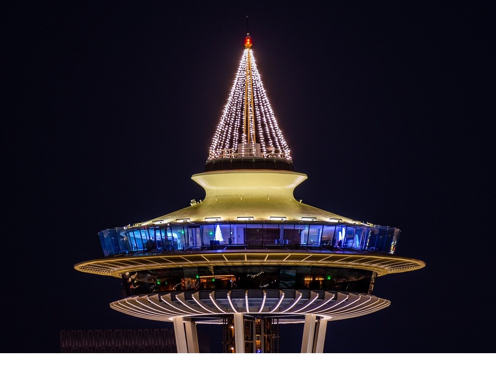Posted on December 1, 2020December 2, 2020 by WillemTuesday/ here’s December The top of the Space Needle is now dressed up with its Christmas tree lights. [Picture from Space Needle @space_needle on Twitter].