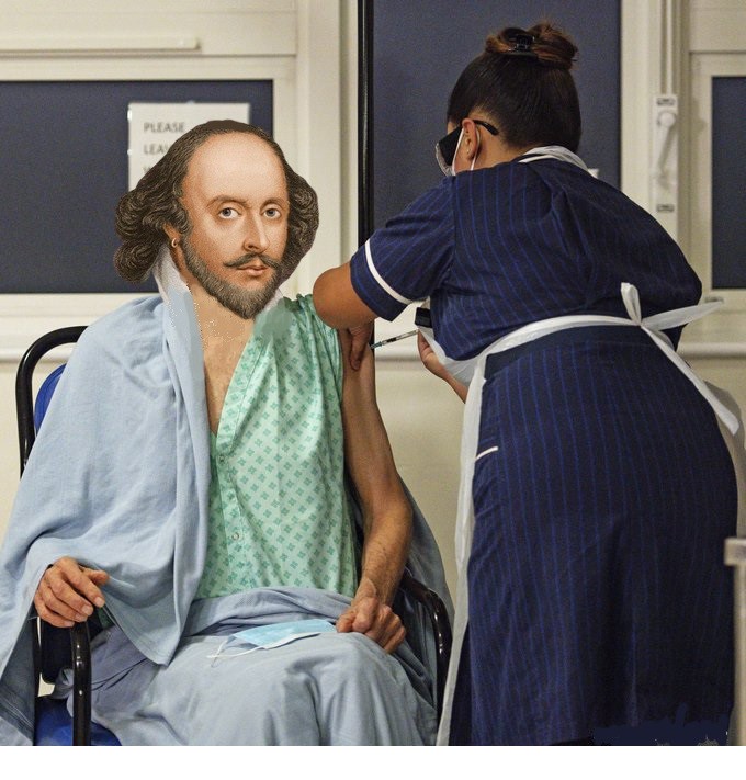 (My apologies to the current day-William Shakespeare that had appeared in the original picture, for replacing his visage with one of The Bard. I could not resist).