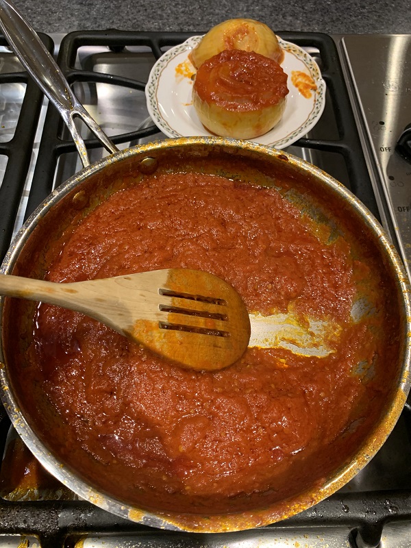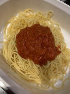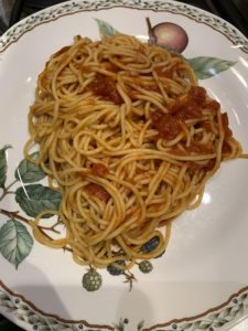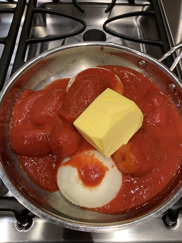 I ran into a super-simple recipe for pasta sauce in the New York Times. Canned peeled tomatoes, butter, onion, a pinch or two of salt. That’s it.