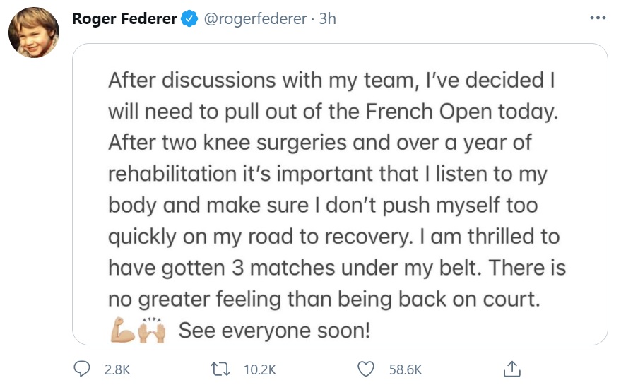 Tennis legend Roger Federer (39) is into the 4th round of the 2021 French Open, winning a grinding 3 ½-hour match that ended after midnight: