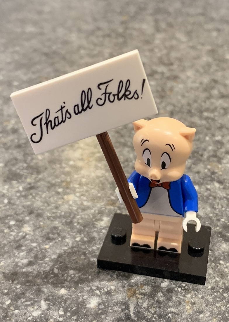 ‘That’s all Folks!’ is Porky Pig’s signature line at the end of many shorts.
