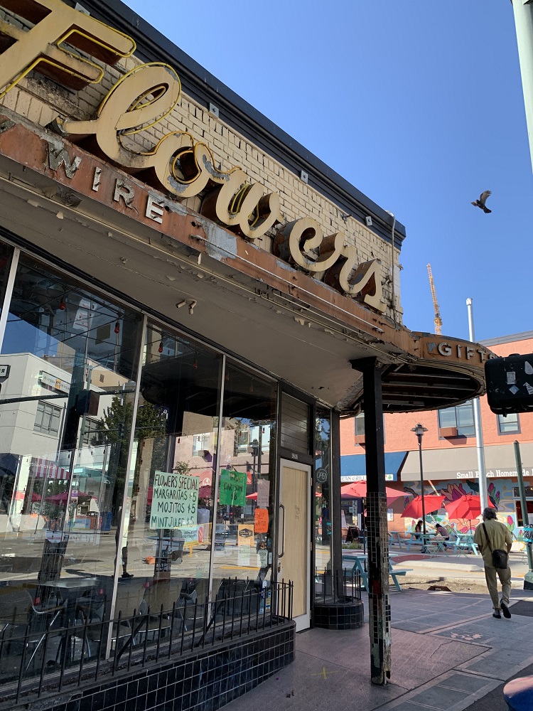 I like the weather-beaten lettering on the Flowers Bar & Restaurant in U District.