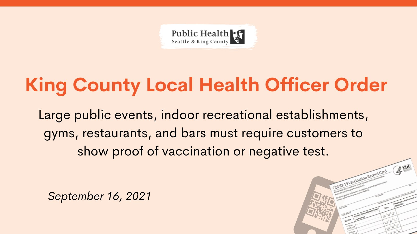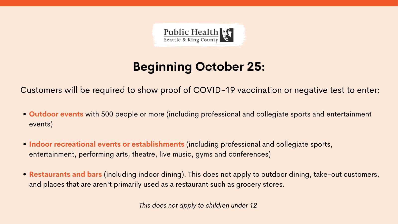 Beginning Oct. 25, customers will have to show proof of vaccination— or a negative COVID test— at most establishments and events here in King County.