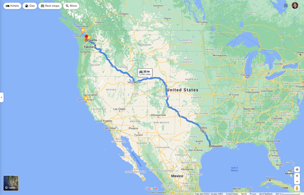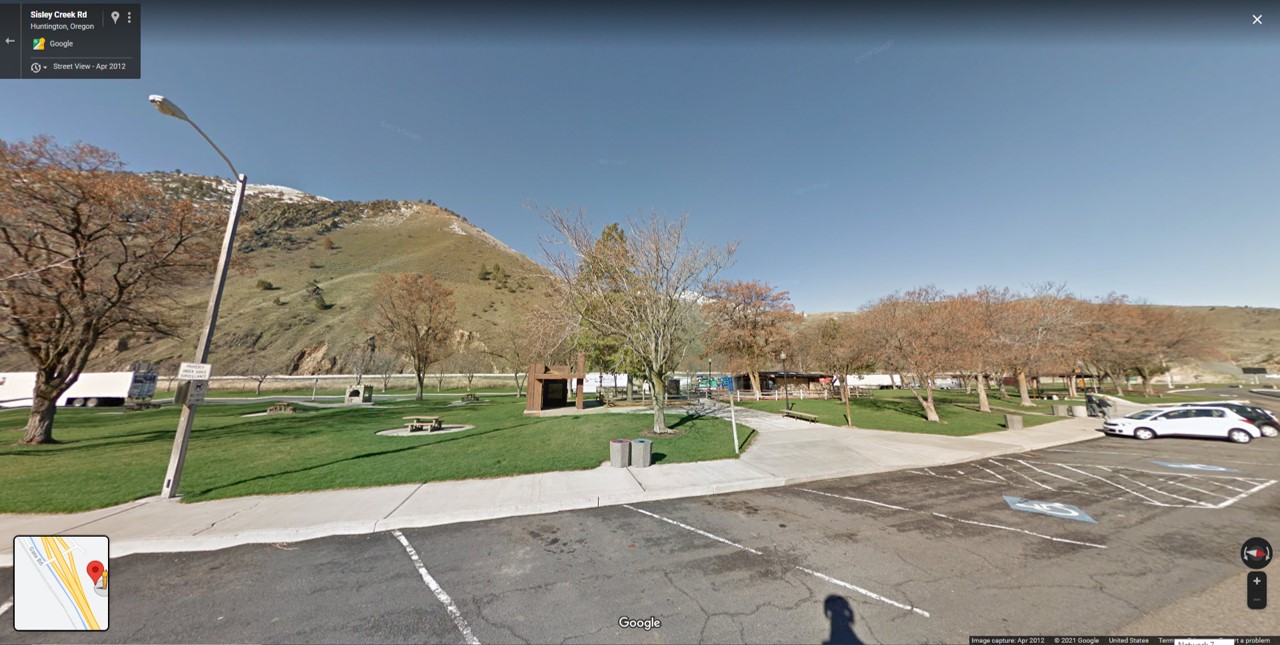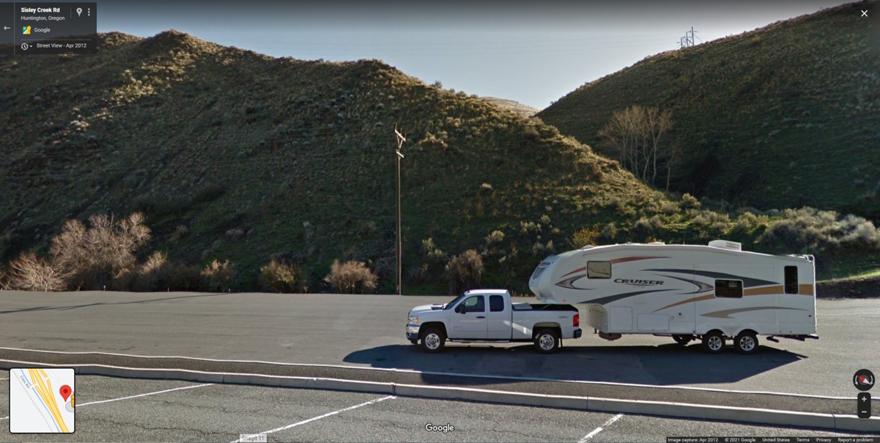 It was the year 2000, and there was no Google, and no Google Maps. I used my trusty 1999 Rand McNally Road Atlas to put this route together (demonstrated on Google Maps). I remember driving through the south of Wyoming. The Matthew Shepard murder of 1998 in Laramie, Wyoming was still fresh in the memory, and (irrationally), I was not going to stop for anything in Wyoming. On to Salt Lake City, which I had been to before then, and through Idaho to get me to the border with Oregon.Here is the picture of me at the rest stop. (Yes, a very plain photo. I had used my 1997 Olympus D-320L 2-megapixel digital camera on the grass, with its 12-second timer). Really not much to go by in the picture, right? .. but I knew from my route, that I had taken Interstate 84 through the northeast of Oregon .... and NOW it is the year 2021, and I can google ‘Interstate 84 rest areas in Oregon’, and a list comes up right away. Just check them out one by one, with Google StreetView, and voila! there is the wooden utility pole, and the hills in the back that look the same. It is no other than the Weatherby Rest Stop, at Milepost 335.9, I-84, Weatherby, OR 97907. (That’s a nice truck & trailer combination that was caught by the Google camera).So right here is where my car was parked, in one of these spots. If I have it right, that is Pedro Mountain and its peak in the left center of the picture.One mystery remains: exactly where on Interstate 84 this photo was taken. The ‘Deer Crossing’ sign is not much help, but with a little patience, I should be able to use the surrounding landscape to find it. Stay tuned. 🙂