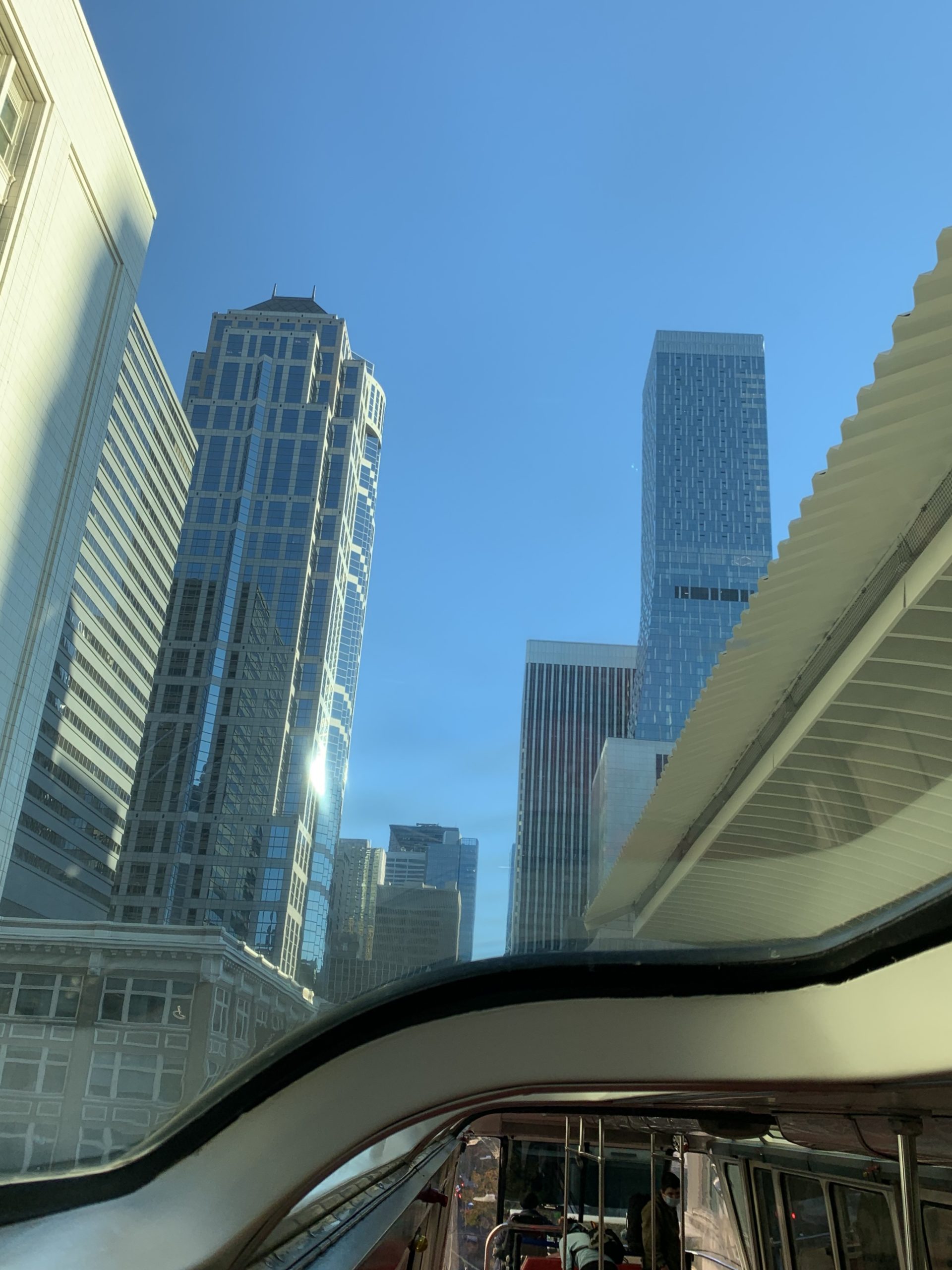 I took the No 10 bus to Westlake Center, and from there, the Monorail to the Space Needle, so that I could walk around Climate Pledge Arena.