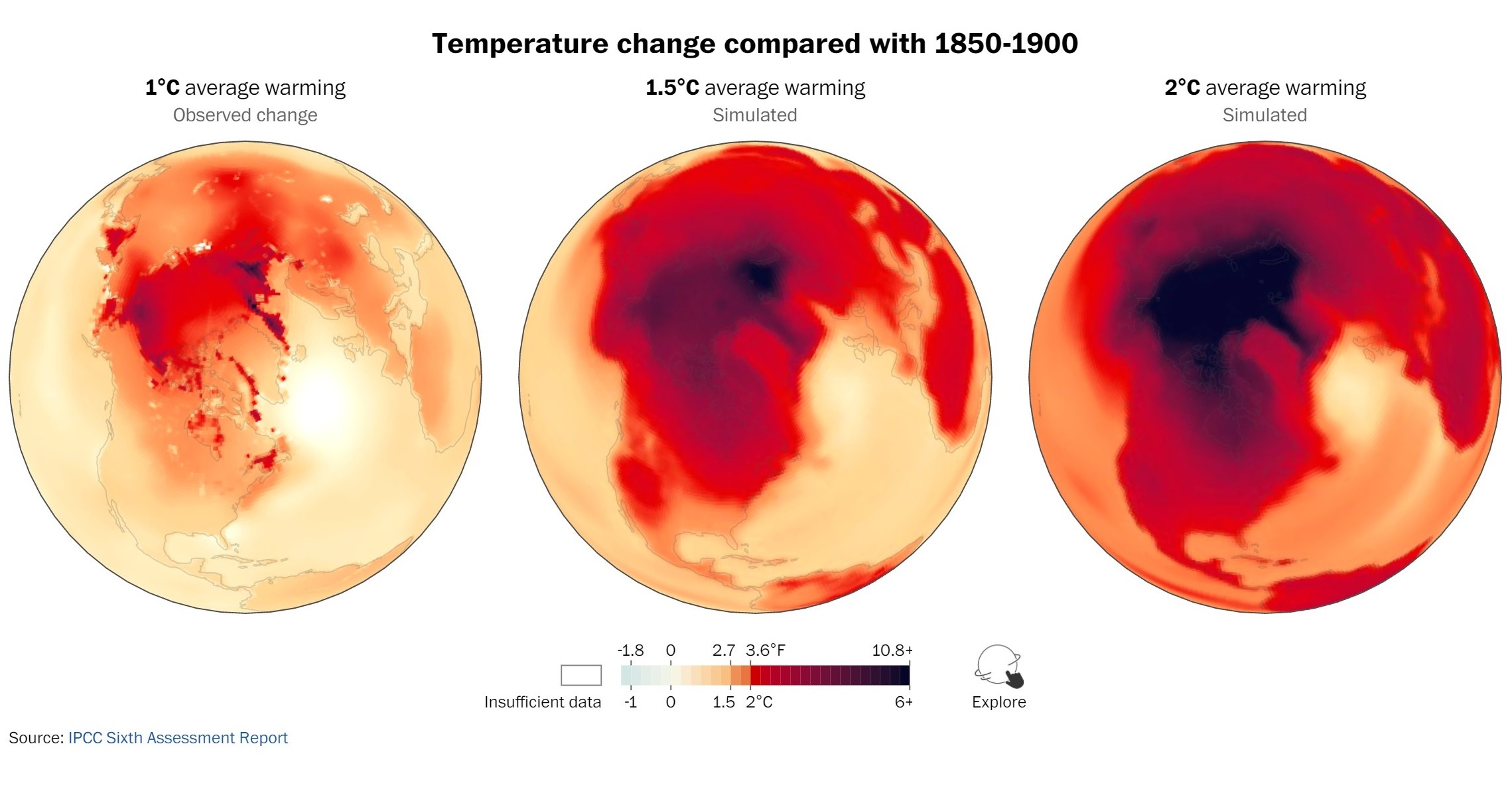 A Washington Post analysis of multiple data sets has found that Earth has already warmed more than 1 degree Celsius on average over the past century. Some places may already have seen rises of 2 °C.