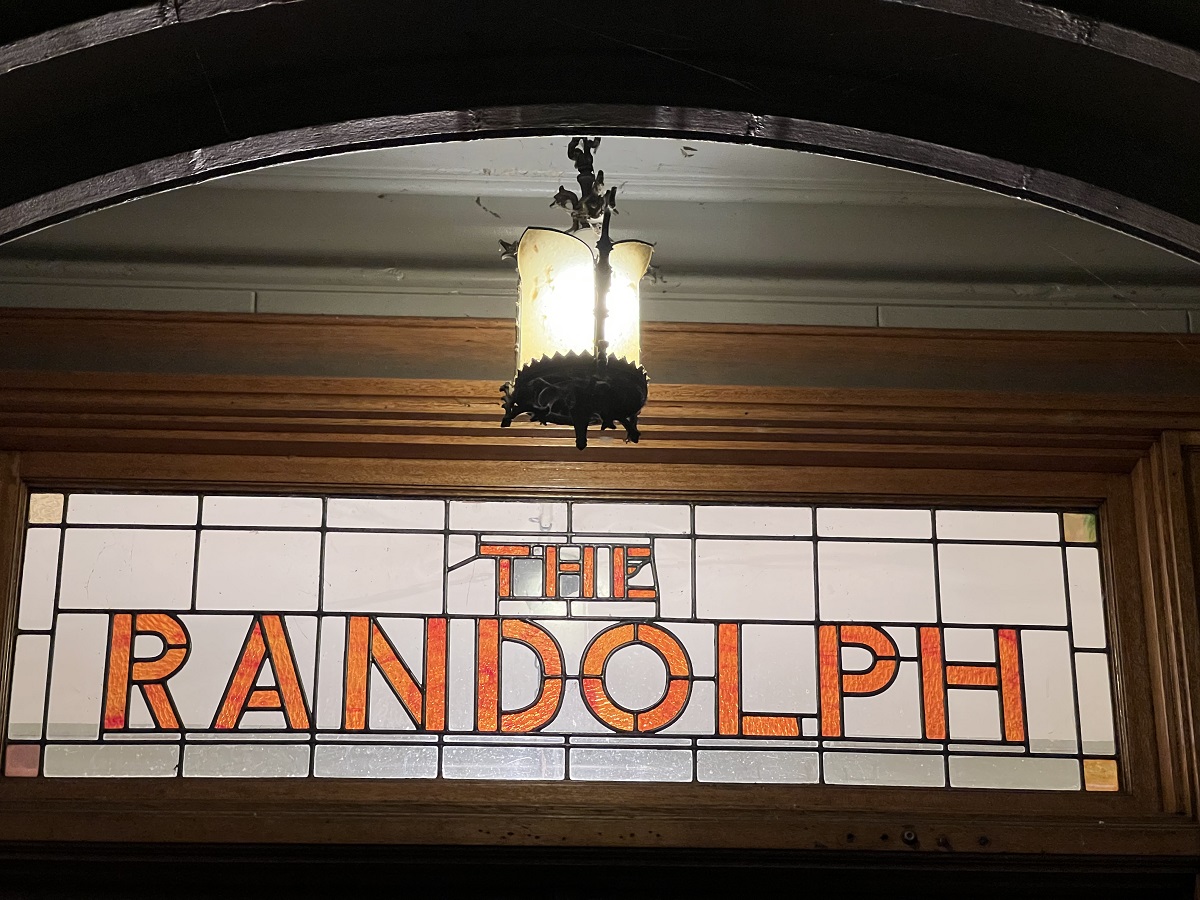I walked by The Randolph* tonight. I like the stained glass with the name at the entrance.