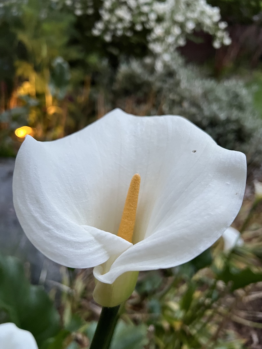 I found this arum lily (genus: Zantedeschia) on 16th Ave, at twilight (time stamp on the photo is 9.16 pm).