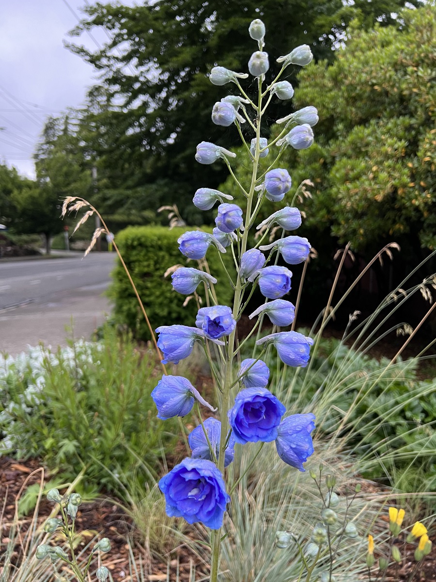 We’ve had gray skies all day, so it was nice to run into this beautiful blue candle larkspur by Miller Community Center on 19th Avenue.